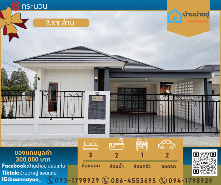 ขนาด 2 ห้องนอน | 2ห้องน้ำ | จอดรถ 1 คัน