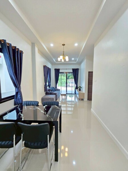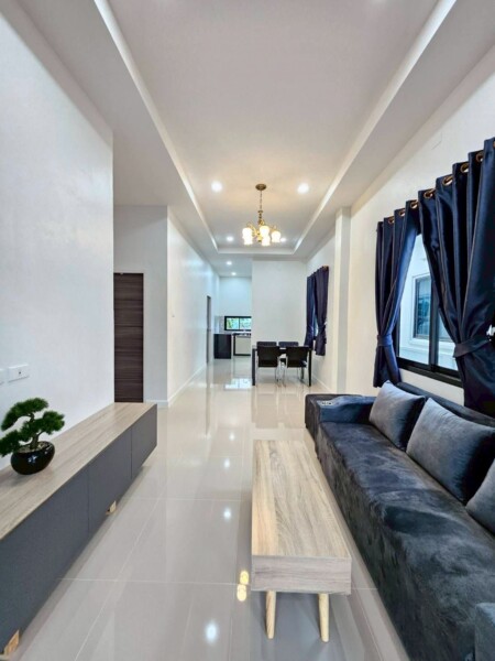 ออกแบบตัวบ้านที่เน้นฝ้าสูง มีความโปร่งโล่ง สบาย บ้านหันหน้าทิศตะวันออก เหลือพื้นที่หน้าบ้านและหลังบ้านไว้ต่อเติมอีกสบาย แถมยังใกล้ร้านค้า เซเว่น ร้านสะดวกซื้อ มากมาย