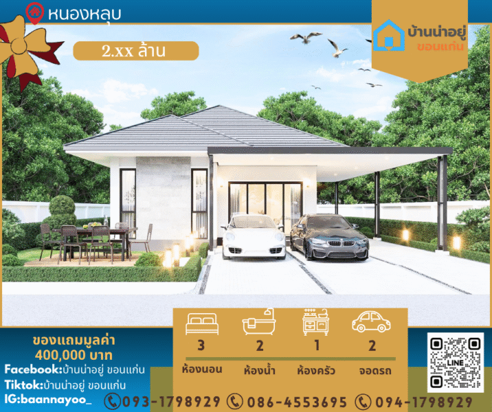 บ้าน 2 ห้องนอน 2 ห้องน้ำจอดรถได้ 2 คัน