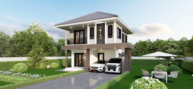 บ้านใหม่สองชั้น กำลังสร้าง รองรับครอบครัวใหญ่ได้สบายๆ บริเวณกว้างๆบรรยากาศดีดีไม่แออัด