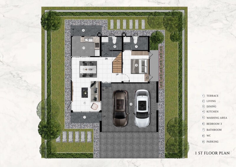 แบบ 3ห้องนอน 4ห้องน้ำ 1ห้องรับแขก 2จอดรถ