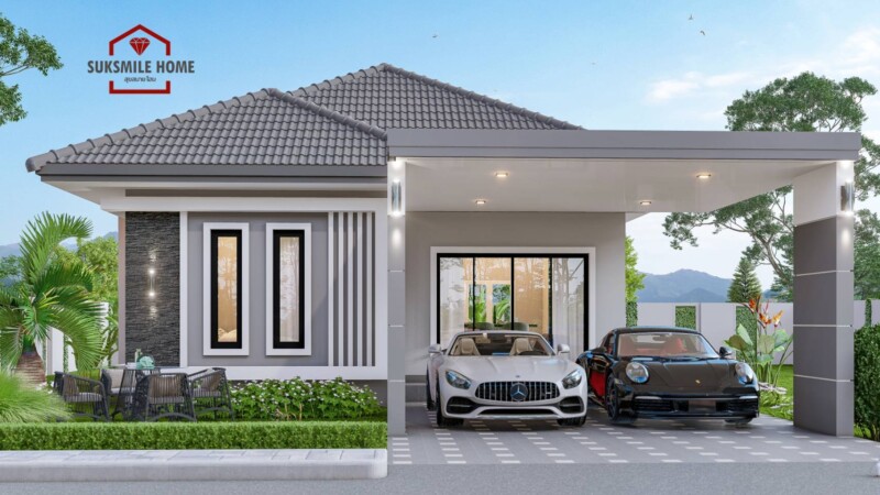 ♦️โรงจอดรถแบบมาตรฐานพร้อมปูพื้นกระเบื้องสวยงาม