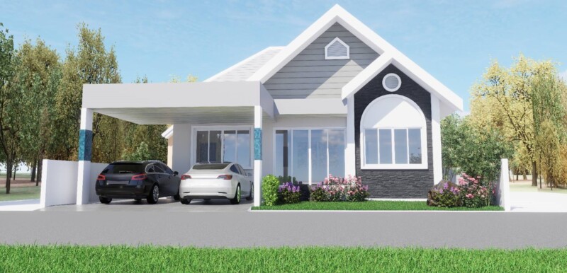 1. โรงจอดรถ พร้อมปูกระเบื้อง